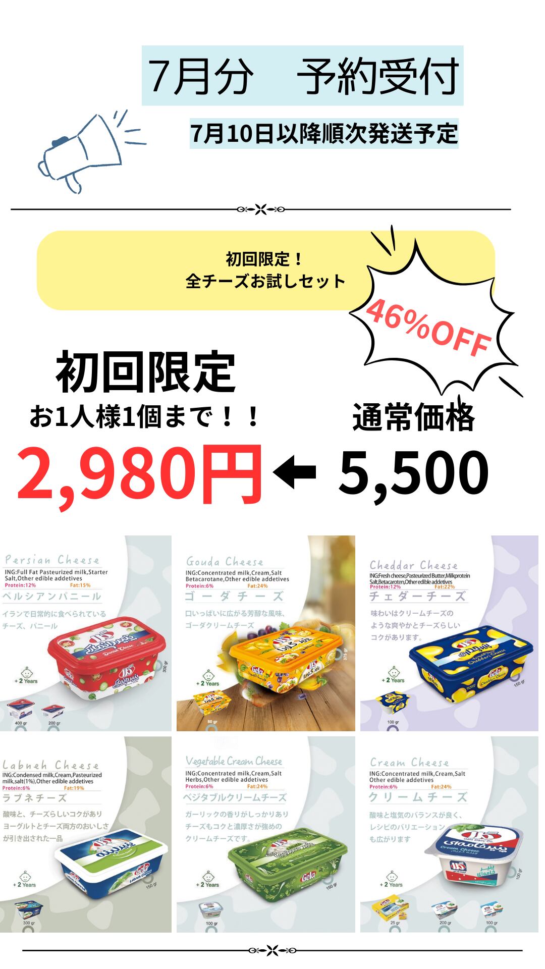 7月分 予約受付【初回限定】お一人様1つ限り 全チーズお試しセット